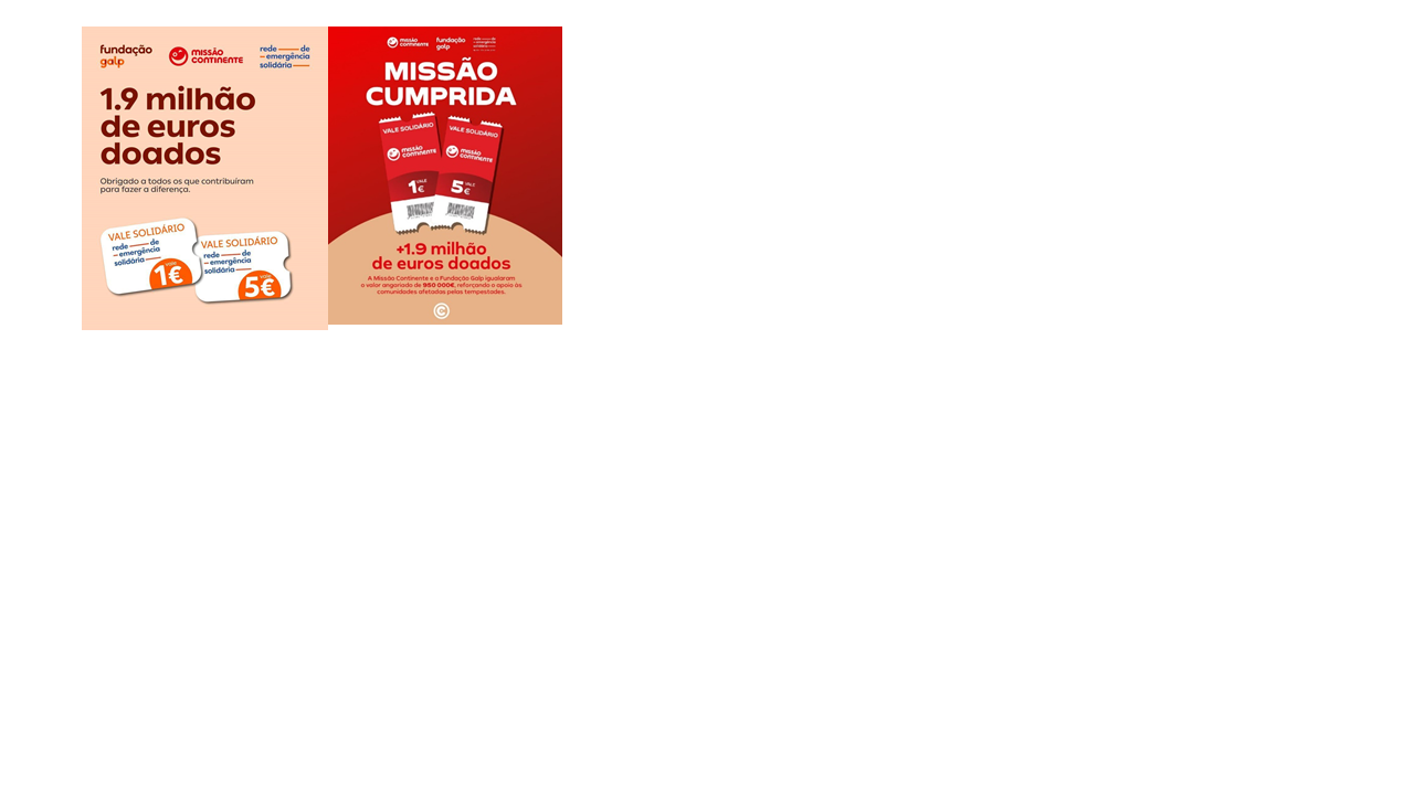 A ENTRAJUDA e a Federação Portuguesa dos Bancos Alimentares agradecem a confiança de todos quantos contribuíram para a Rede de Emergência Solidária, da Fundação GALP e da Missão Continente, parceiros de impacto nesta campanha SOS Tempestades.